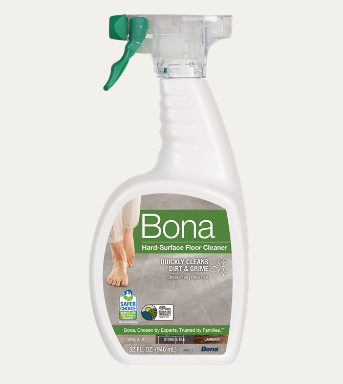 The Bona Hard-Surface Floor Cleaner is one of the most reliable everyday cleaners for stone, tile, laminate and luxury vinyl (LVT) floors. It’s a gentle, pH-neutral spray designed to lift dust, dirt and daily grime without leaving streaks or residue. Simply spray and wipe with a microfibre pad — no rinsing, no fuss.
