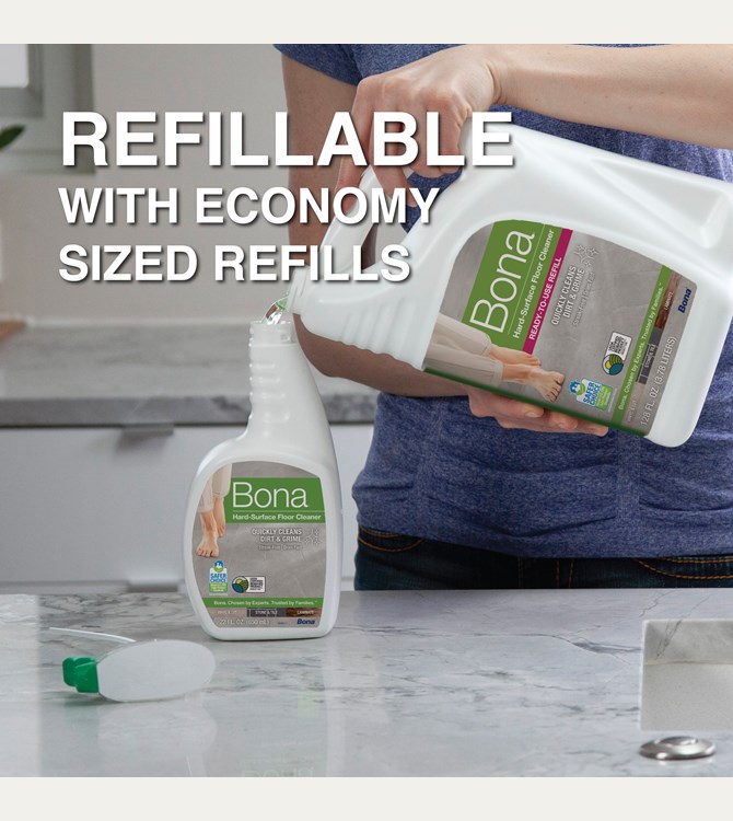 For the best results, pair it with a Bona Spray Mop or a quality microfibre pad. Refills and concentrate options are also available through First Floor.
